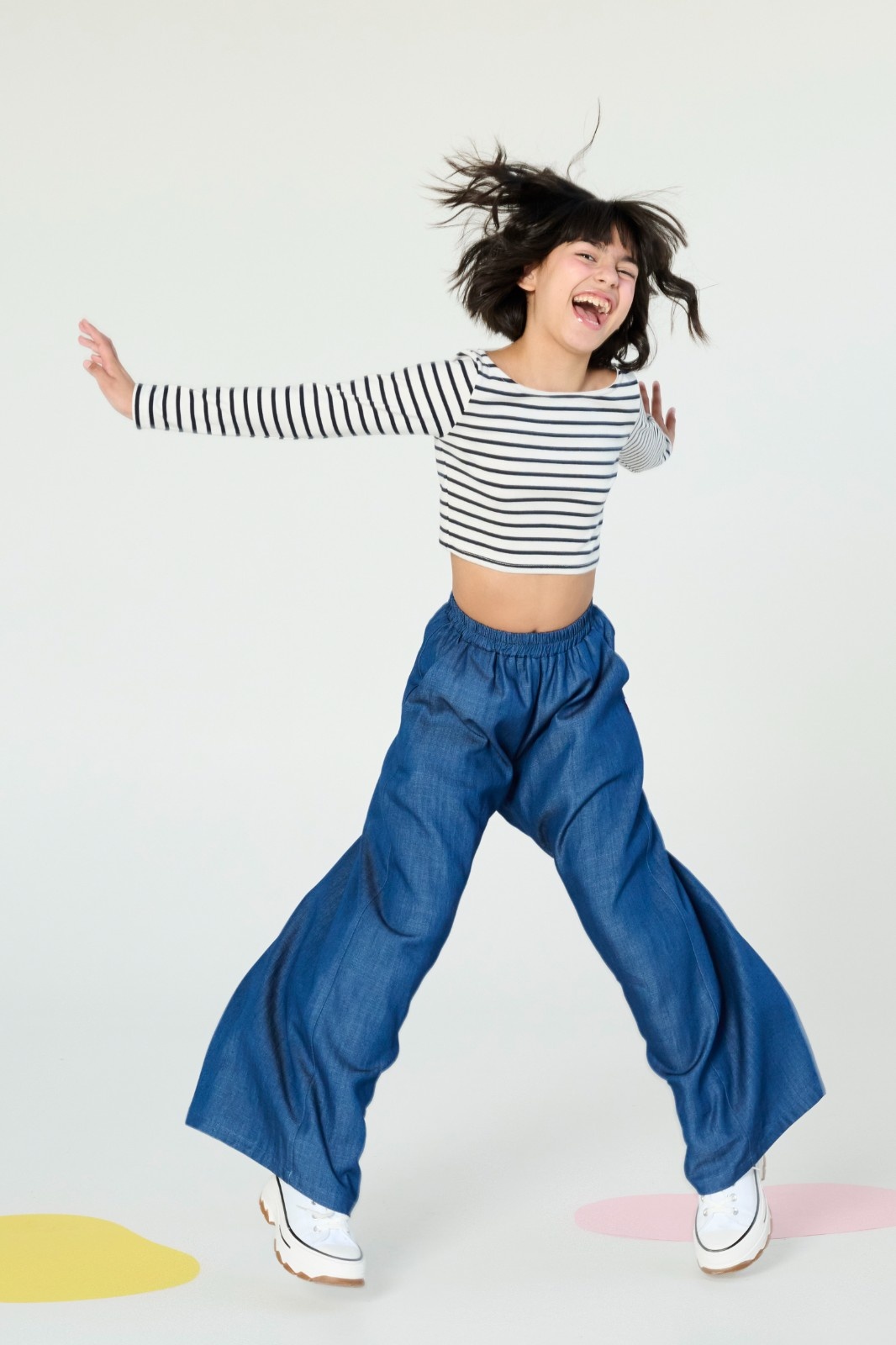 Ριγέ Set: Crop Top & Φαρδιά Παντελόνα – Black & White Graphic