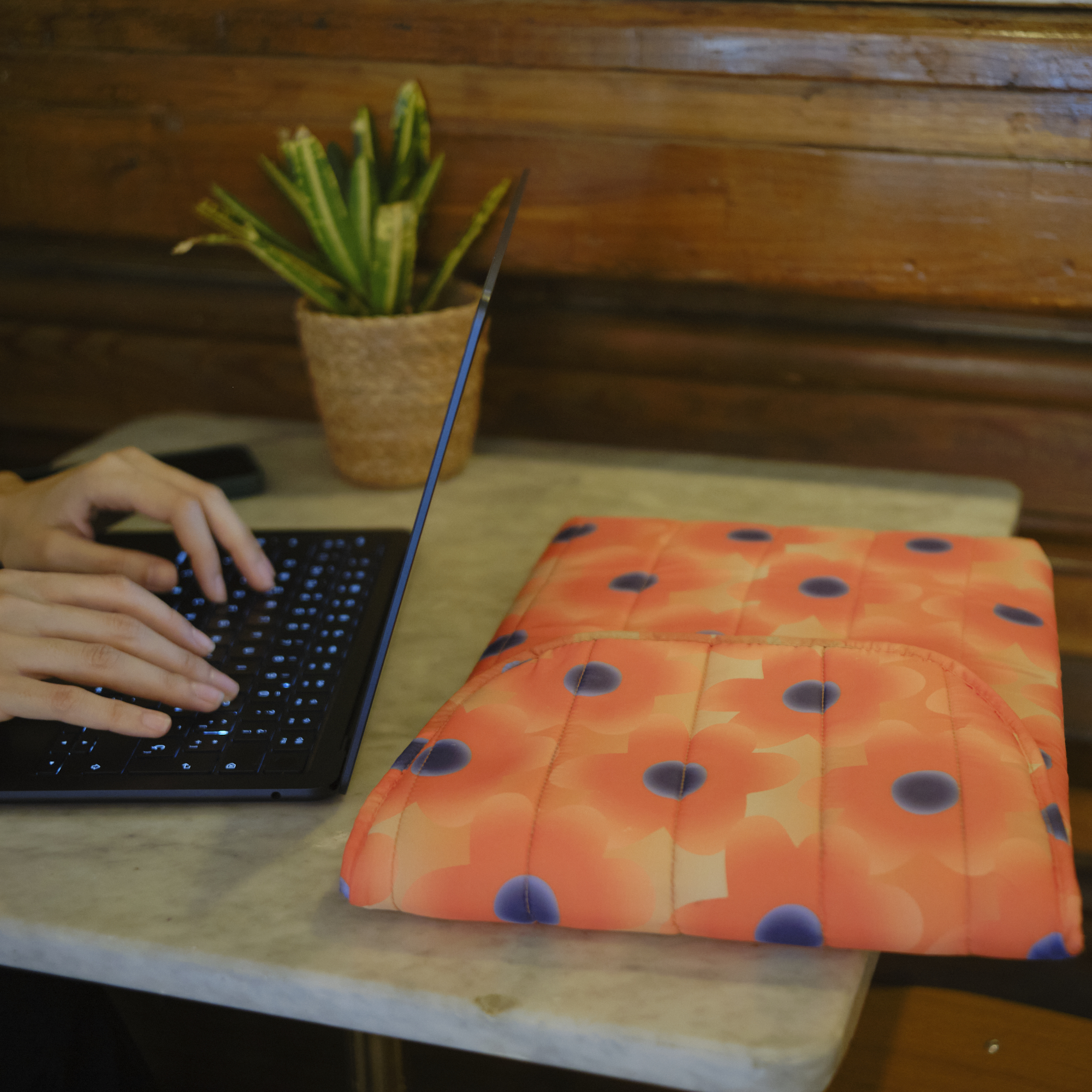 PUFFY FLORAL LAPTOP SLEEVE ORANGE HF