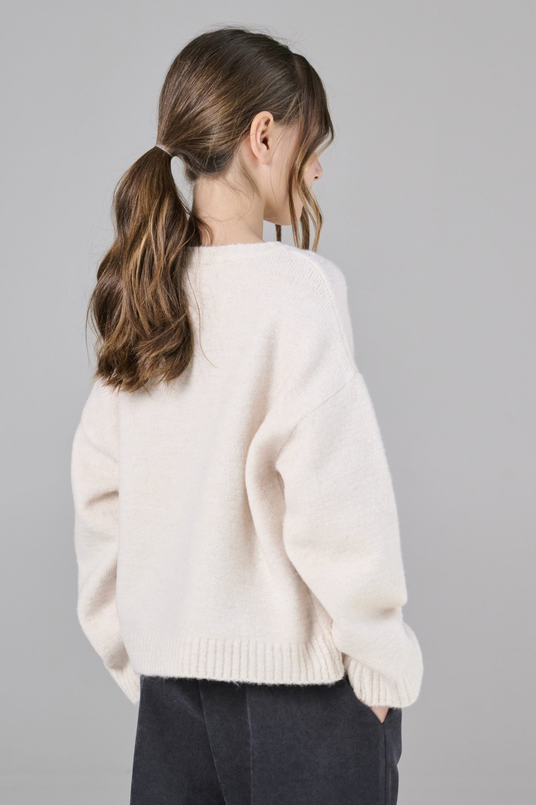 Πουλόβερ πλεκτό με στρόγγυλο λαιμό Εκρού