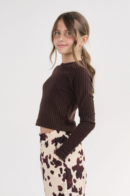 Μπλούζα καφέ με λαιμόκοψη