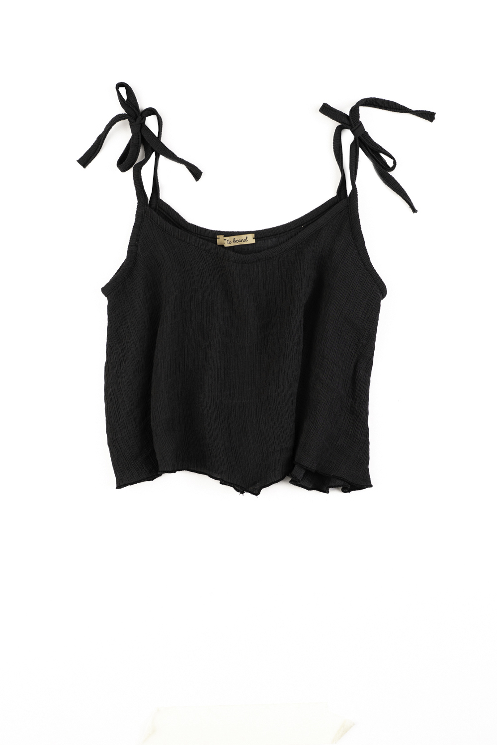 The Chalky Lovey Dovey Top – Ανθρακί Crop Top με Δέσιμο στους Ώμους