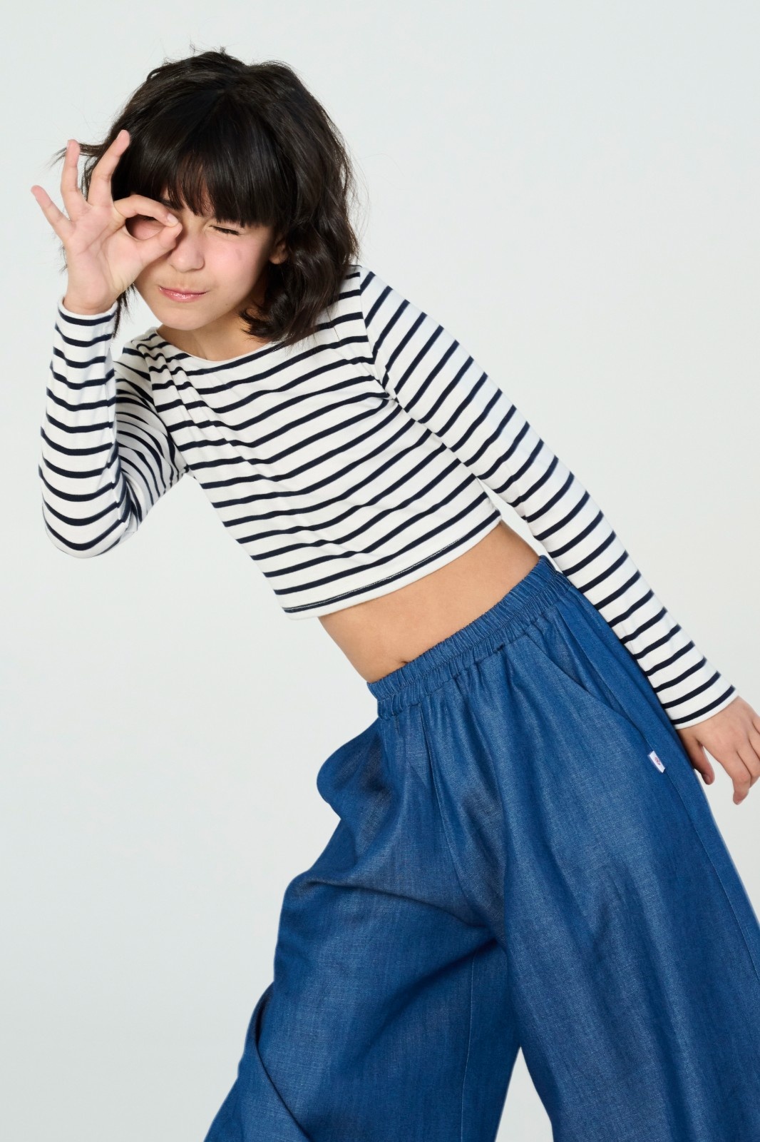 Μακρυμάνικο Crop Top με Navy Ρίγες