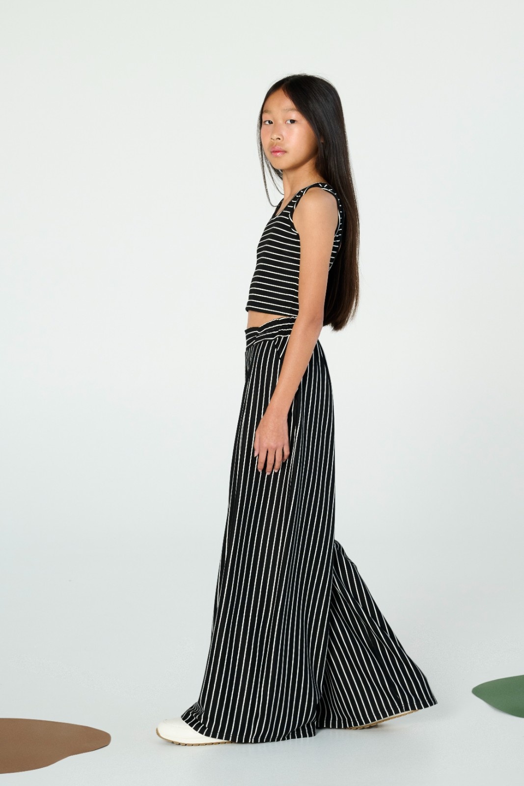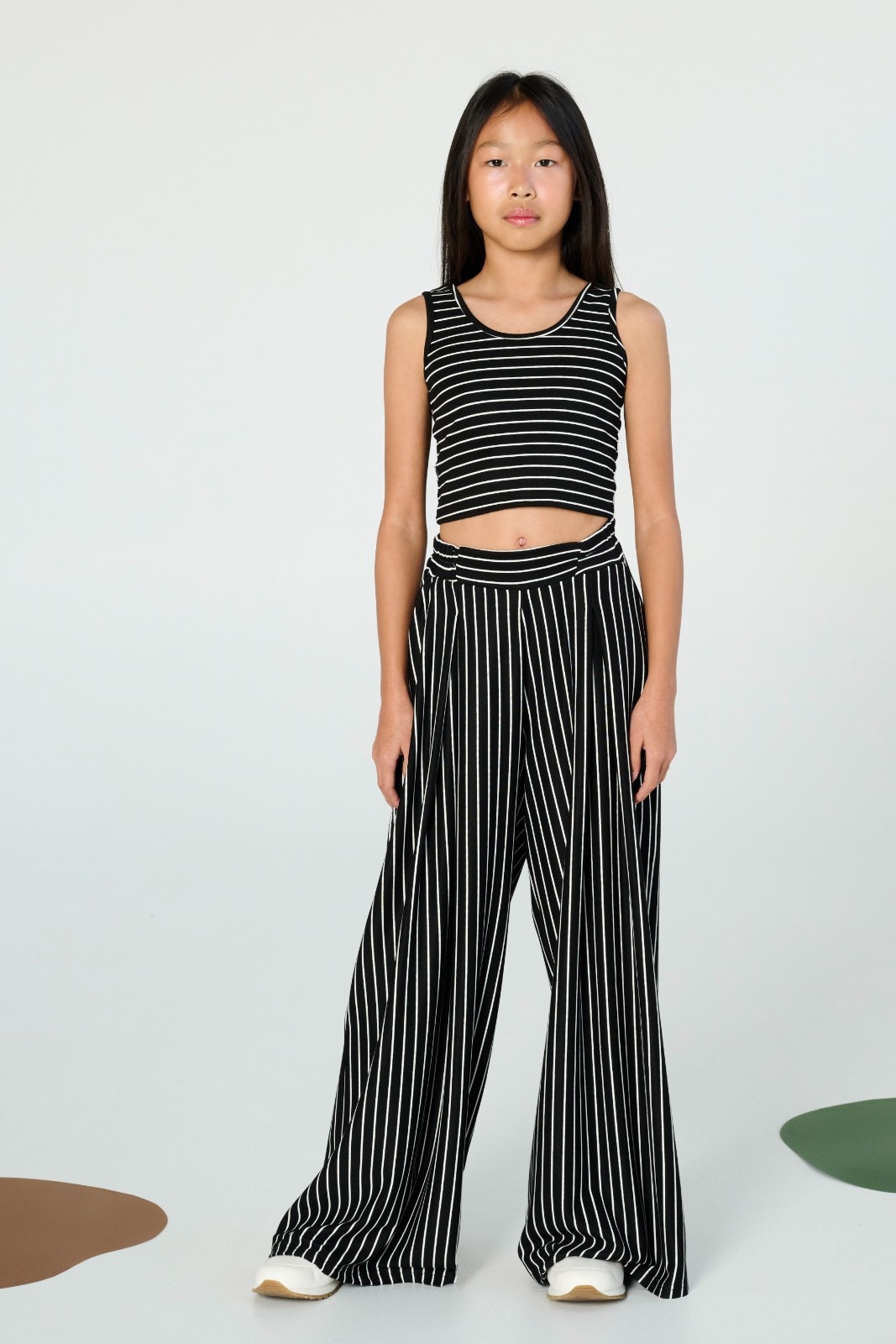Ριγέ Set: Crop Top & Φαρδιά Παντελόνα – Black & White Graphic