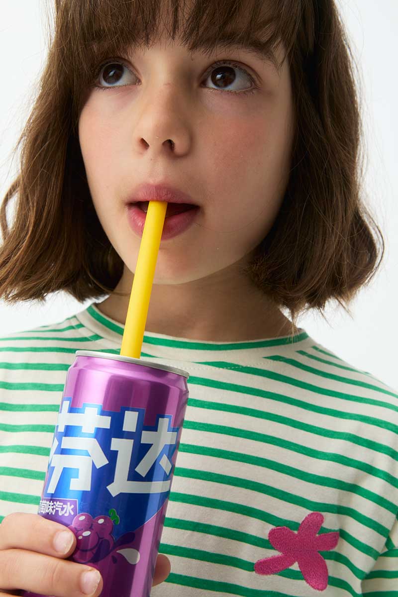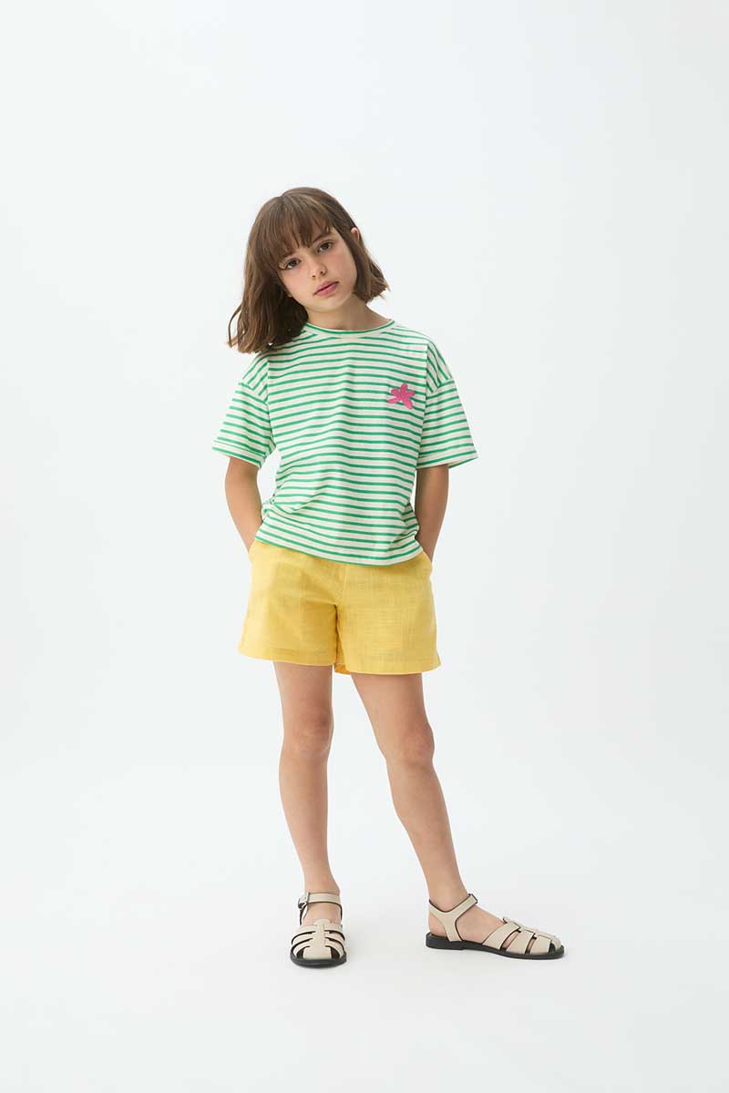 Παιδική Ριγέ Μπλούζα με Κεντημένο Λουλούδι – Πράσινο