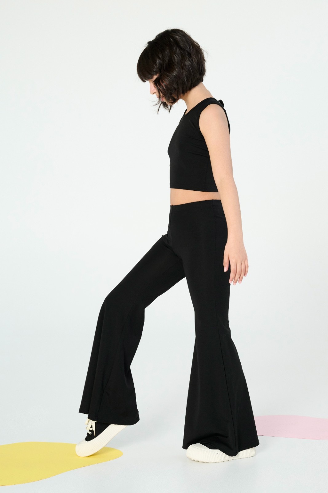 Το απόλυτο μαύρο σετ που θα γίνει η αγαπημένη σας επιλογή για κάθε ώρα της ημέρας. Η Melin Rose επαναπροσδιορίζει το στυλ και την άνεση, συνδυάζοντας ένα θηλυκό crop top με την απόλυτη τάση της σεζόν: την παντελόνα-κολάν καμπάνα.