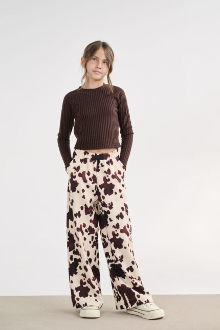 Μπλούζα με λαιμόκοψη διάταξη καφέ