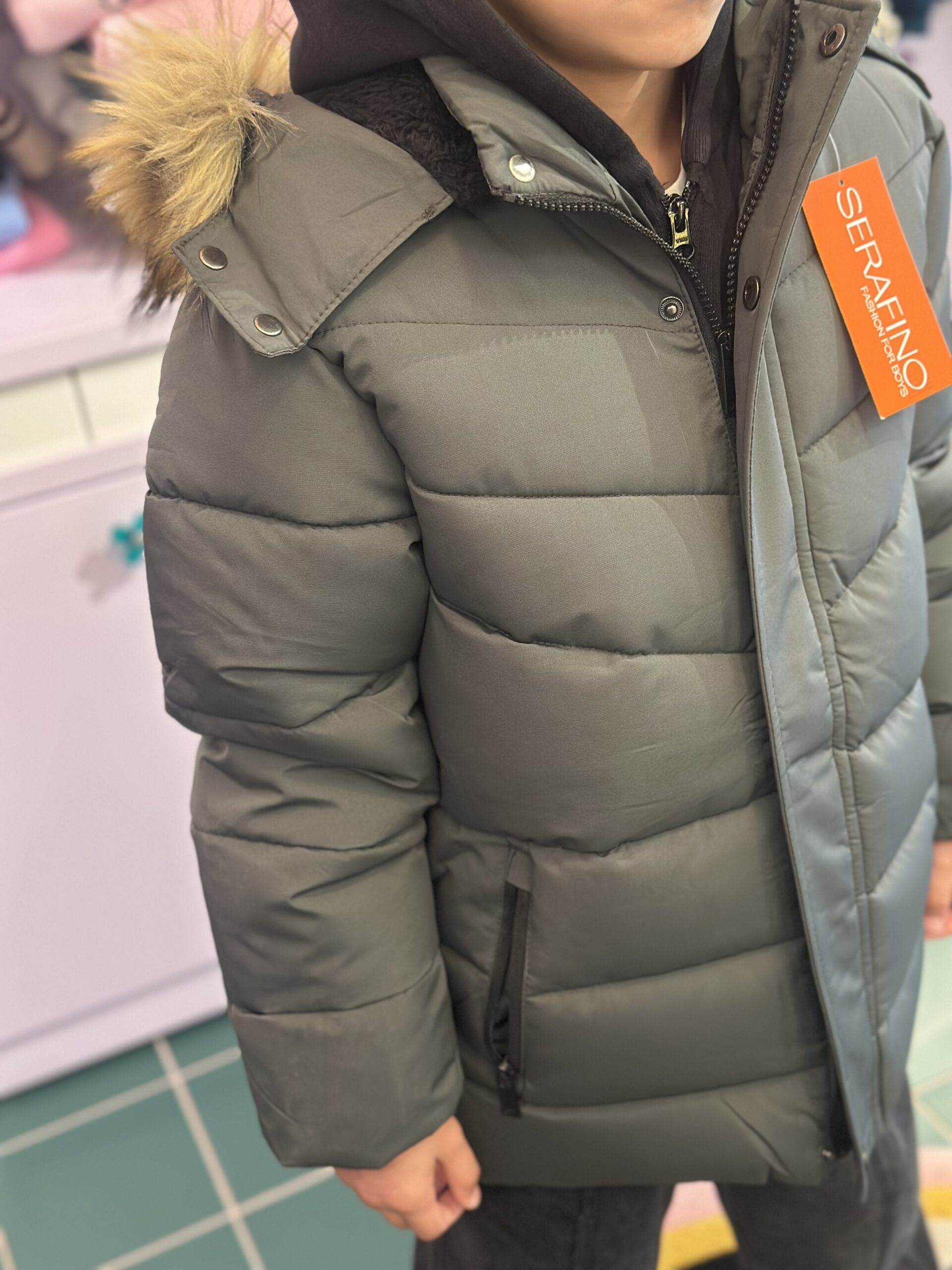 Παιδικό μπουφάν για αγόρι σε κομψό χρώμα λαδί, ιδανικό για τις κρύες μέρες του χειμώνα. Χοντρό και ζεστό, προσφέρει άνεση και προστασία από το κρύο, ενώ η κουκούλα με αποσπώμενο γουνάκι χαρίζει στυλ και πρακτικότητα. Κατασκευασμένο από ανθεκτικά υλικά, είναι κατάλληλο για καθημερινή χρήση, σχολείο και βόλτες. Κλείνει εύκολα και εφαρμόζει άνετα, κρατώντας το παιδί ζεστό όλη μέρα.