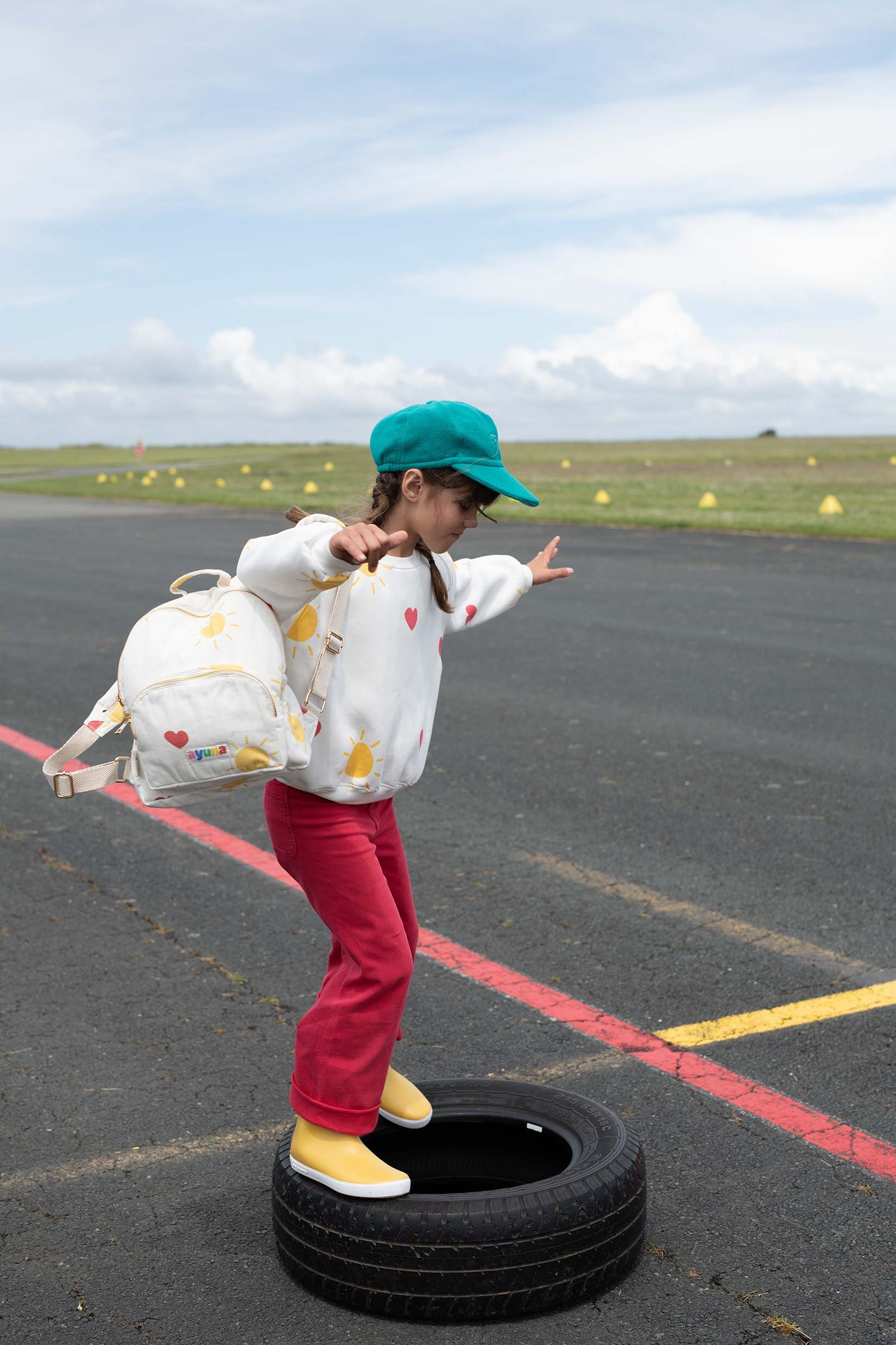 Ένα ελαφρύ, επενδεδυμένο σακίδιο πλάτης με πολύχρωμο σχέδιο, κατασκευασμένο από 100% βαμβάκι. Φέρτε τη χαρά μαζί σας όπου κι αν πάτε.Η παιδική τσάντα έχει διαστάσεις 27x32x11εκ