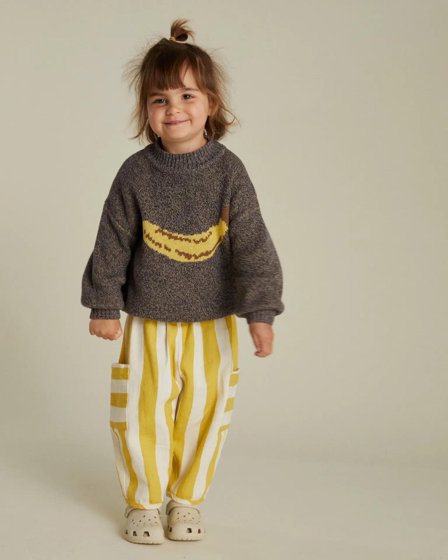 Πλεκτό πουλόβερ σε χρώμα καφέ με σχέδιο μπανάνα