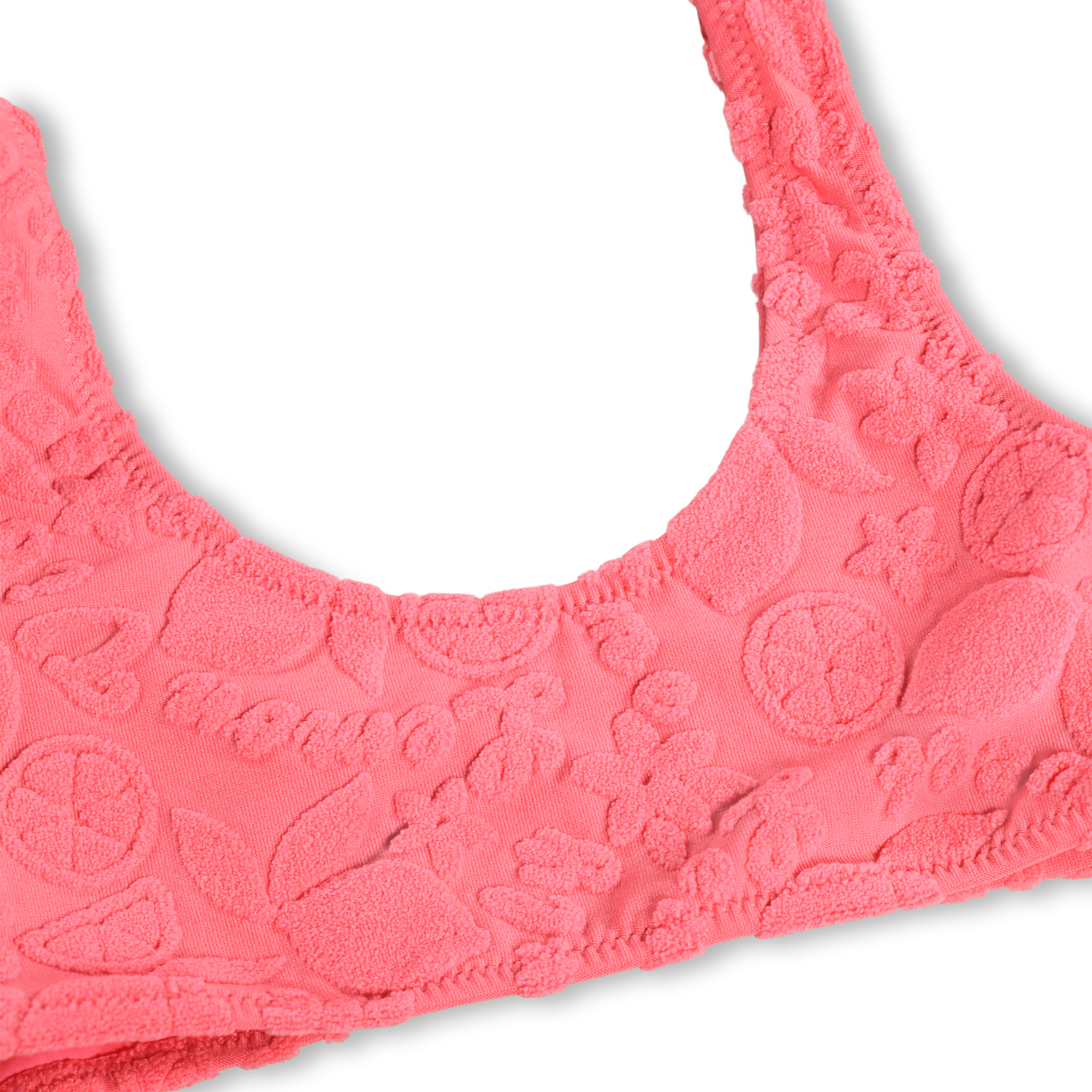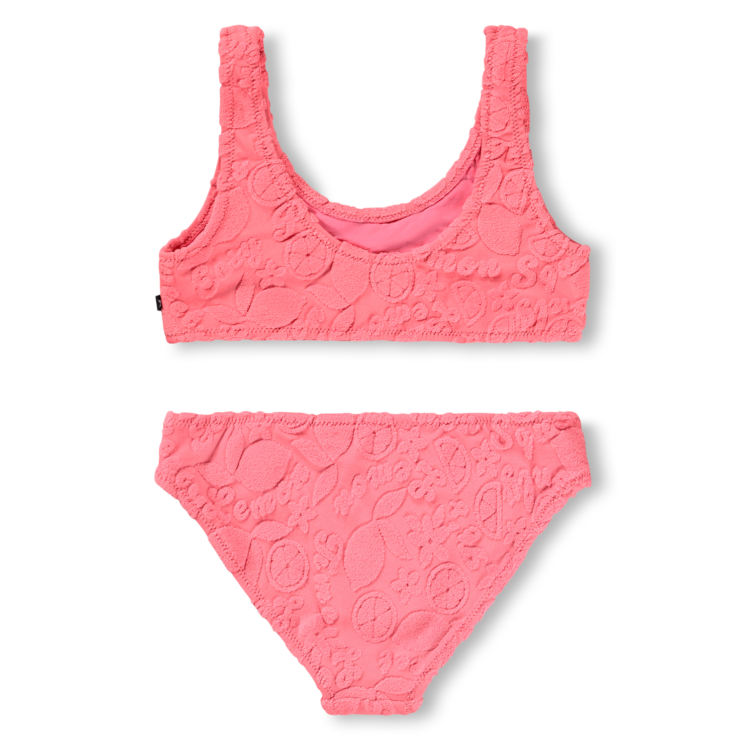 Φέρε τη φρεσκάδα των καλοκαιρινών φρούτων στην παραλία με το μπικίνι Nola Terry της Molo. Κατασκευασμένο από απαλό, πετσετέ (terry) ύφος που στεγνώνει γρήγορα, συνδυάζει την άνεση με την κορυφαία αισθητική και την ασφάλεια κάτω από τον ήλιο.