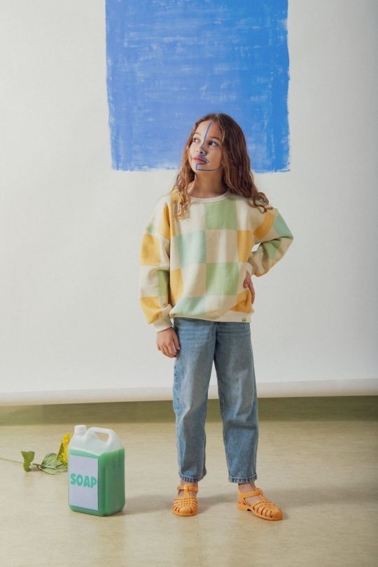 Αυτό το παιδικό φούτερ της συλλογής Check είναι σχεδιασμένο για να φέρει χαμόγελα και στυλ σε κάθε παιδική γκαρνταρόμπα. Με το εμβληματικό μοτίβο σκακιέρας σε γλυκές παστέλ αποχρώσεις (κίτρινο, πράσινο, λευκό), μετατρέπει ένα κλασικό ρούχο σε statement κομμάτι, γεμάτο θετική ενέργεια.
