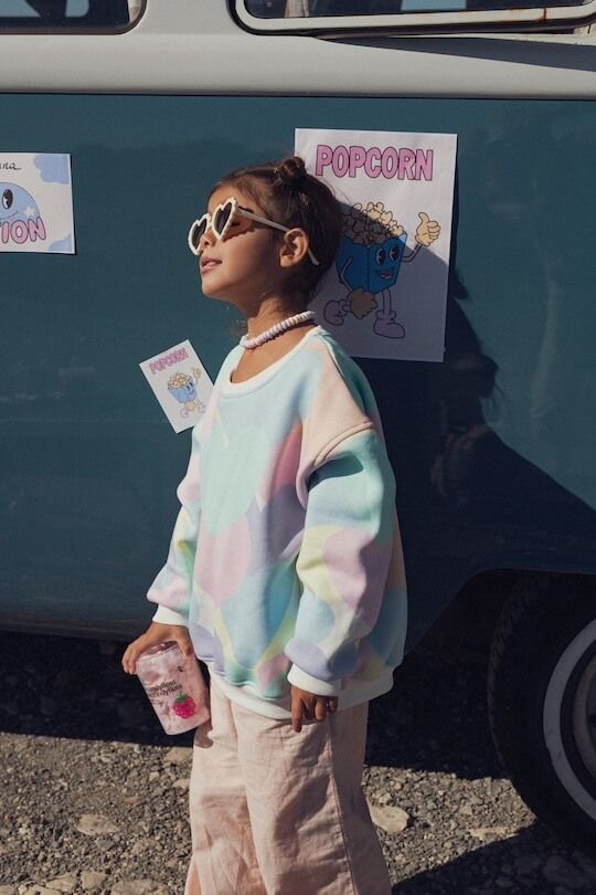 Ένα άνετο, φαρδύ παιδικό φούτερ με το τύπωμα Love. Απαραίτητο για μια καλλιτεχνική εμφάνιση.Υλικό: Φλις από βαμβάκι – 93% βαμβάκι – 7% ελαστάνη
