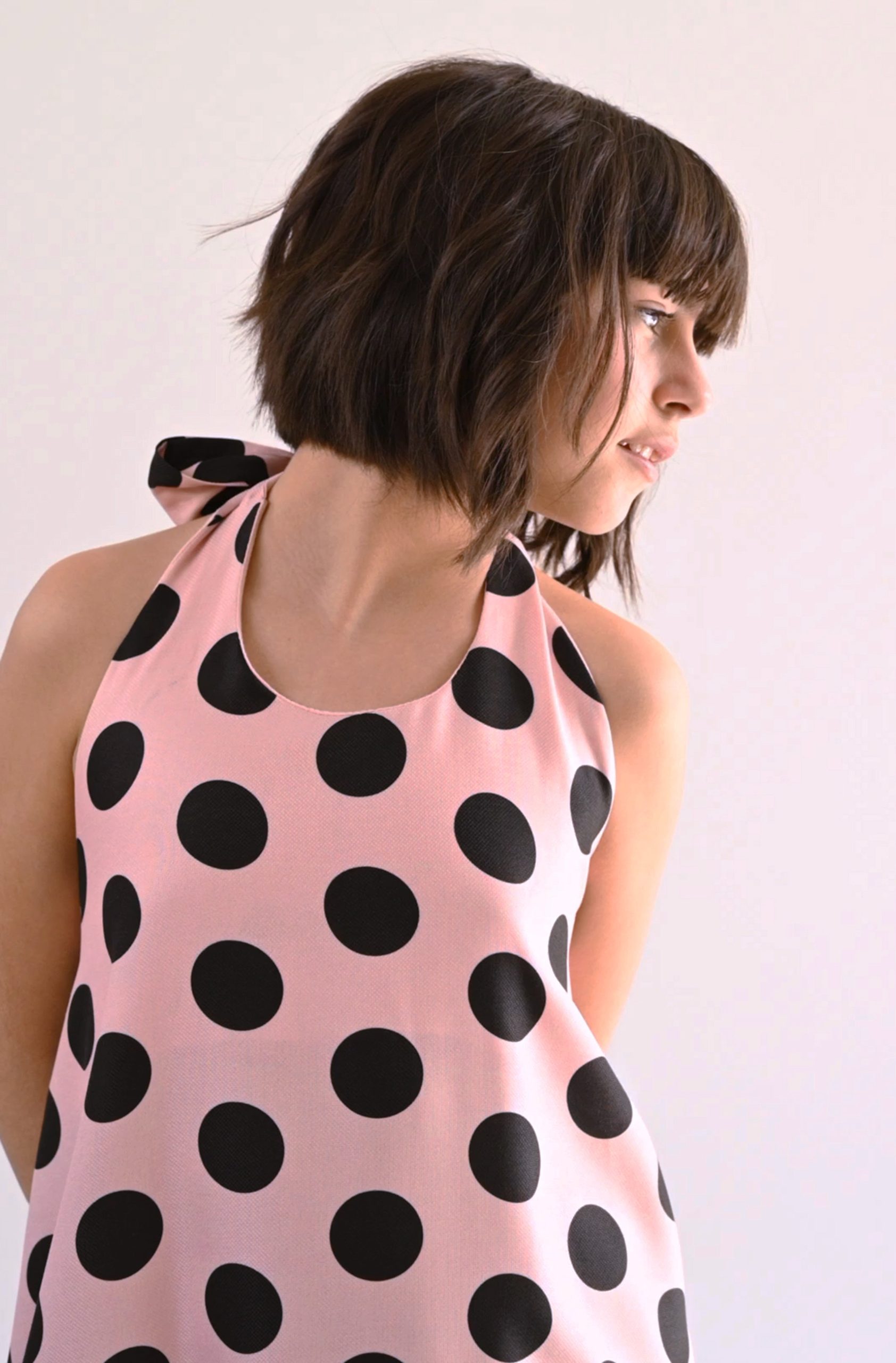 Λεπτομέρειες: Εξώπλατο, δέσιμο στον λαιμό, βολάν.