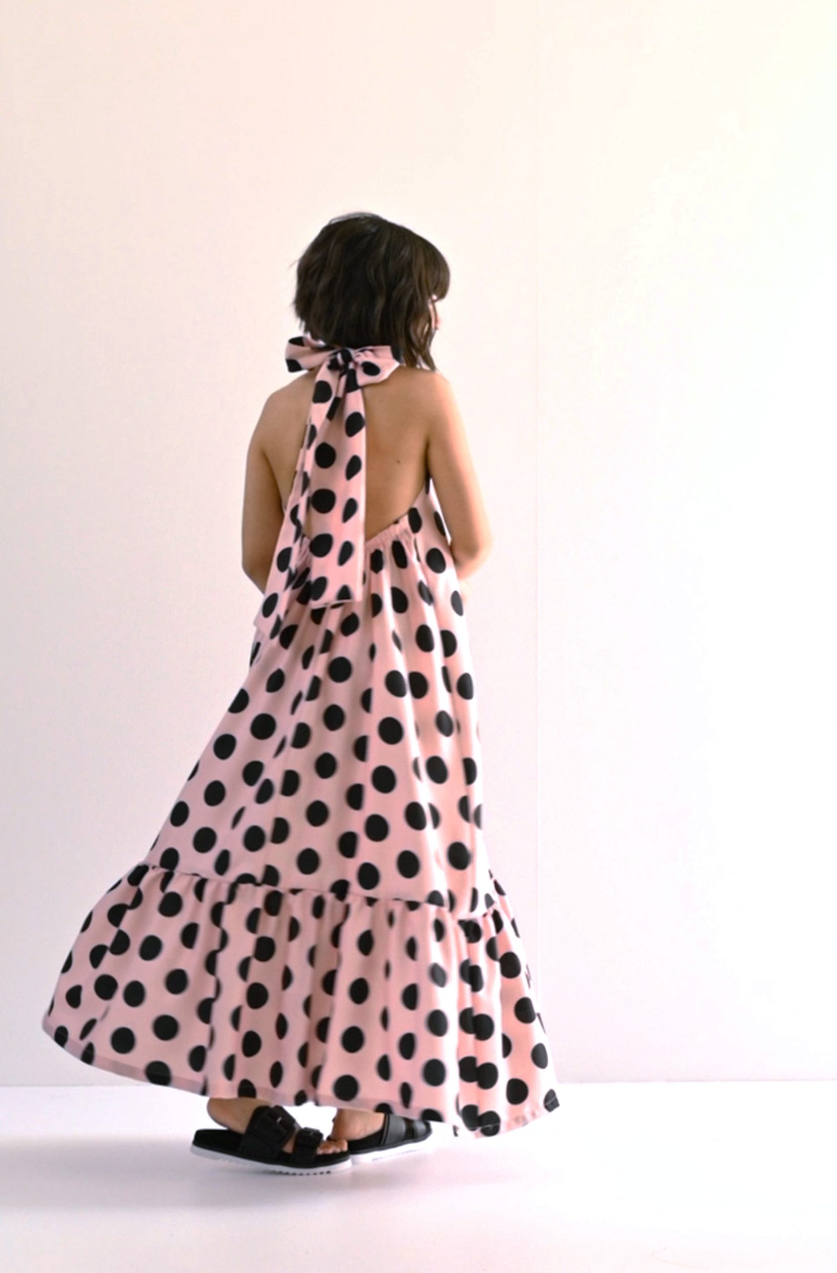 Halter-neck με Δέσιμο: Ο μεγάλος φιόγκος στον λαιμό δεν είναι μόνο διακοσμητικός, αλλά επιτρέπει και την προσαρμογή του φορέματος για τέλεια εφαρμογή.