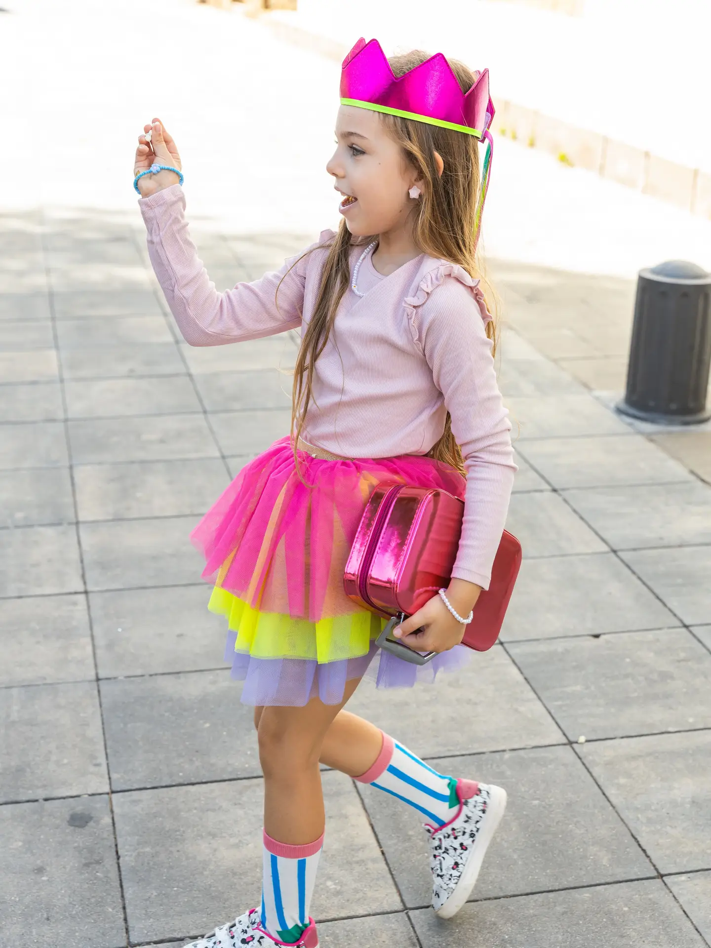 Η φούστα που φέρνει ένα χαμόγελο μόνο και μόνο με το βλέμμα της! Η πολύχρωμη φούστα Punky με βολάν από την Ratatam Kids προσθέτει μια έκρηξη ενέργειας σε κάθε ντύσιμο με την εκρηκτική της κλίση σε φανταχτερό ροζ, ηλιόλουστο κίτρινο και λαμπερό μωβ. Ογκώδης, ελαφριά και γεμάτη διασκέδαση, στροβιλίζεται και στροβιλίζεται με κάθε βήμα: είναι αδύνατο να αντισταθείτε στην επιθυμία να χορέψετε μαζί της!