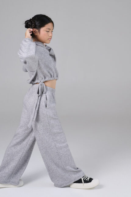 Σετ πλεκτό με κουκουλα για κοριτσι γκρι