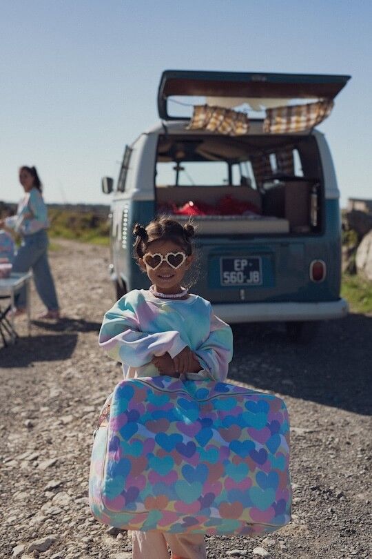 Η βαλίτσα από δομημένο βαμβάκι είναι ευρύχωρη και ελαφριά. Ένα απαραίτητο αξεσουάρ για ταξίδια με στυλ και φως. Μοτίβο αγάπης με καρδιές για μια σύγχρονη, καλλιτεχνική και ρομαντική εμφάνιση.